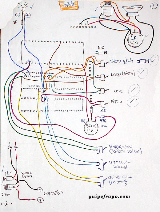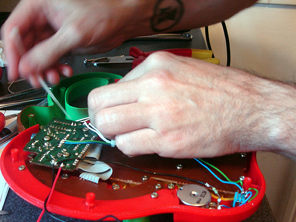 Watch your fingers and ALWAYS use batteries for circuit bending instead power supply, youŽll be safe and your toy too.